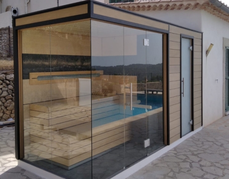Baño de aire seco en local de madera.