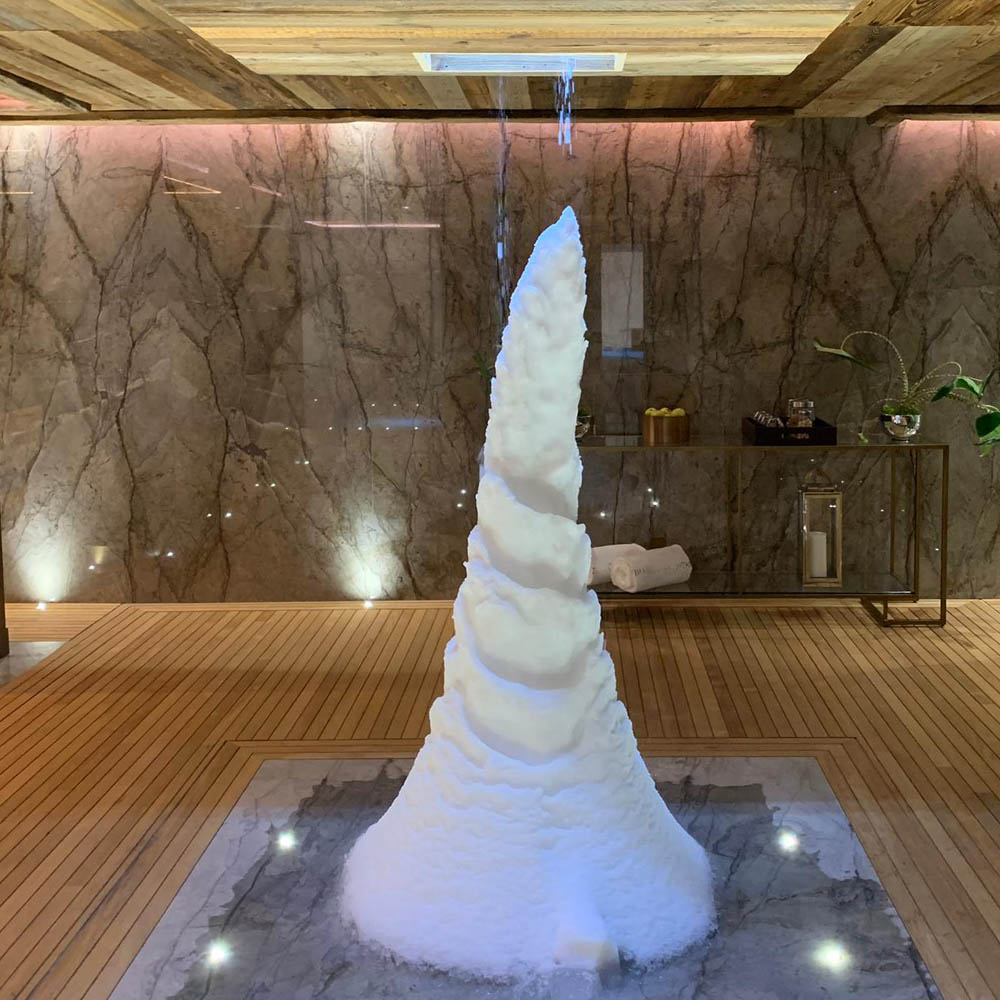 Espacio creado para la recreación y el disfrute, creación de nieve de forma continua, contraste térmico a través de la suavidad de la nieve pura.