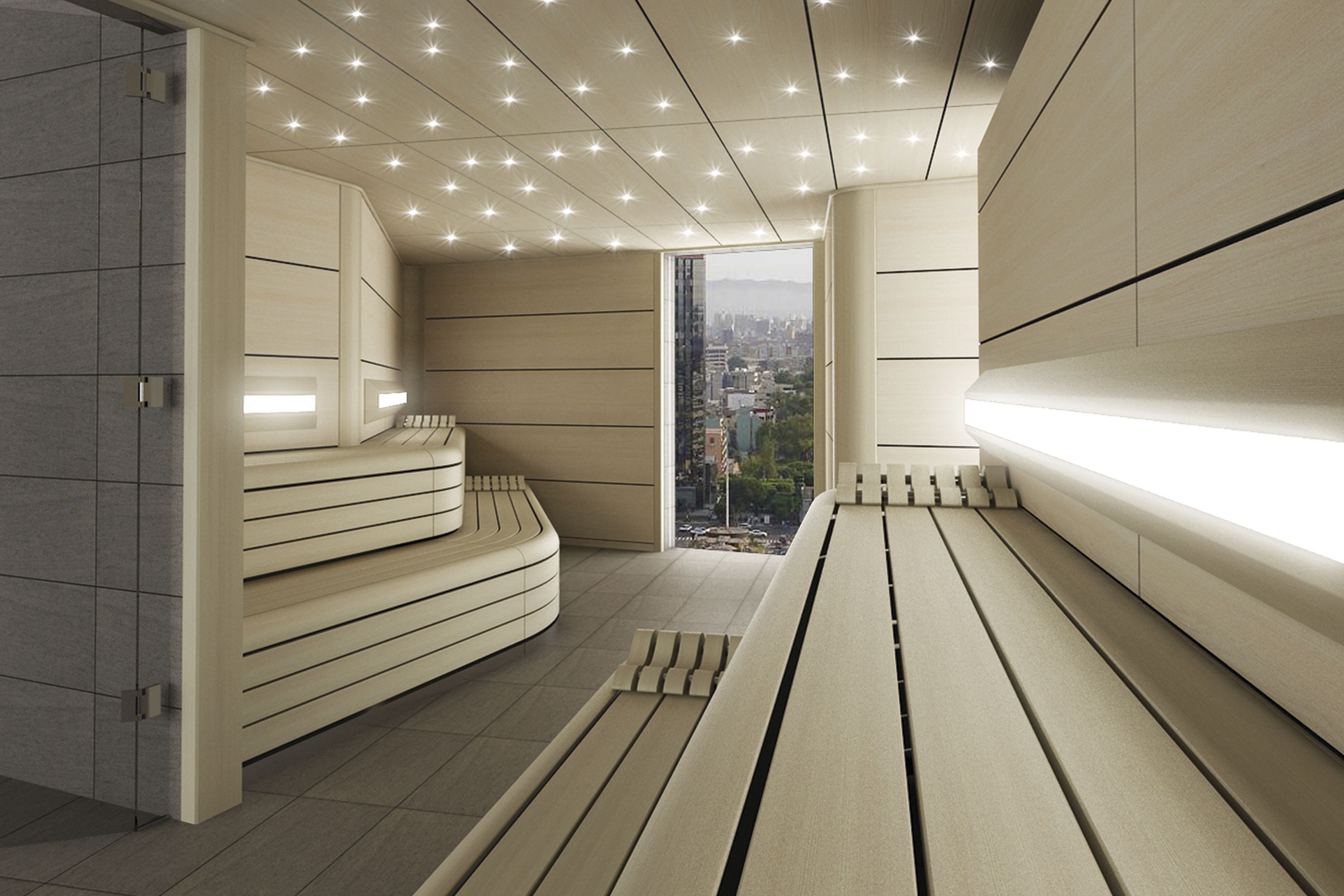 Baño de aire seco en local de madera.