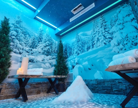 Permite el contacto con la nieve, producida únicamente con aire y agua, recreando el clima típicamente invernal de los países del Norte. Entrar en ella produce un escalofrío regenerante después de los tratamientos de calor.