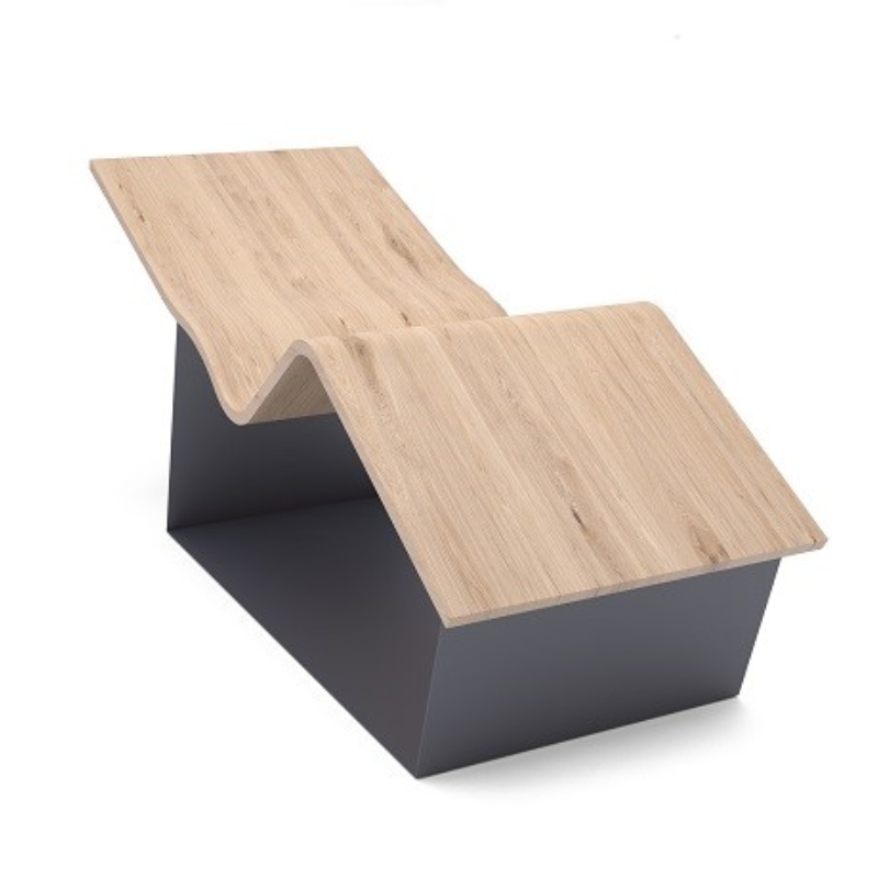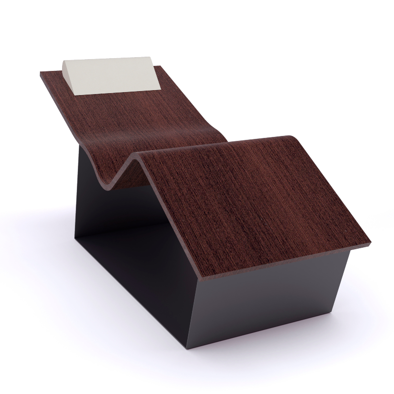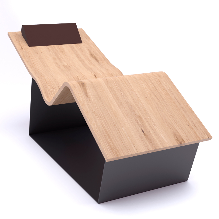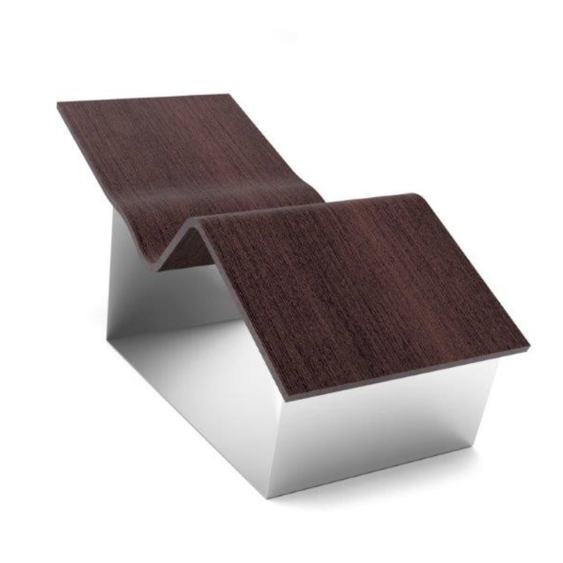 Fabricada con maderas nobles, tratadas por alta frecuencia para garantizar la durabilidad, el grado óptimo de humedad y la estabilidad de las curvas, se apoya sobre una base de acero.